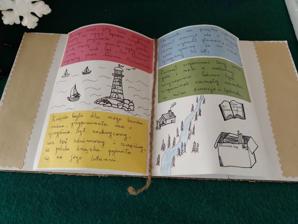 Na korytarzu szkolnym możemy podziwiać makiety wykonane przez uczniów kl. 8, którzy w ten sposób podsumowali pracę z nowelą pt. „Latarnik” H. Sienkiewicza. Na mapie świata przedstawiono tułaczkę Skawińskiego po świecie, następnie – etapy życia na wyspie w latarni. Makiety książki pokazują, jak wielkim przeżyciem dla bohatera było otrzymanie i przeczytanie „Pana Tadeusza” A. Mickiewicza.